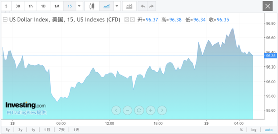 美联储决议公布后,美元指数持续走高,日内涨幅一度扩大至1%,随后涨幅有所收窄。