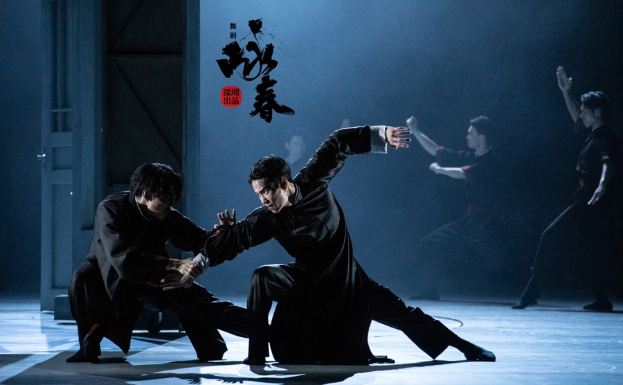 如果说香云纱是叶问的乡愁底色,咏春拳则体现了他的侠者风骨。用舞蹈诠释岭南武术精髓,是《咏春》的核心看点。咏春拳起源于明末清初,集快拳、短刀、长棍于一体,经叶问发扬成为南派武术代表。由于舞蹈演员的呼吸、发力方式和武术完全不同,为了“舞武融合”,全体演员在开排前接受了一年多的武术特训,最终在舞台树立起内敛而武功超群的叶问形象,更让“双非遗”转化为跨越地域的情感共鸣。