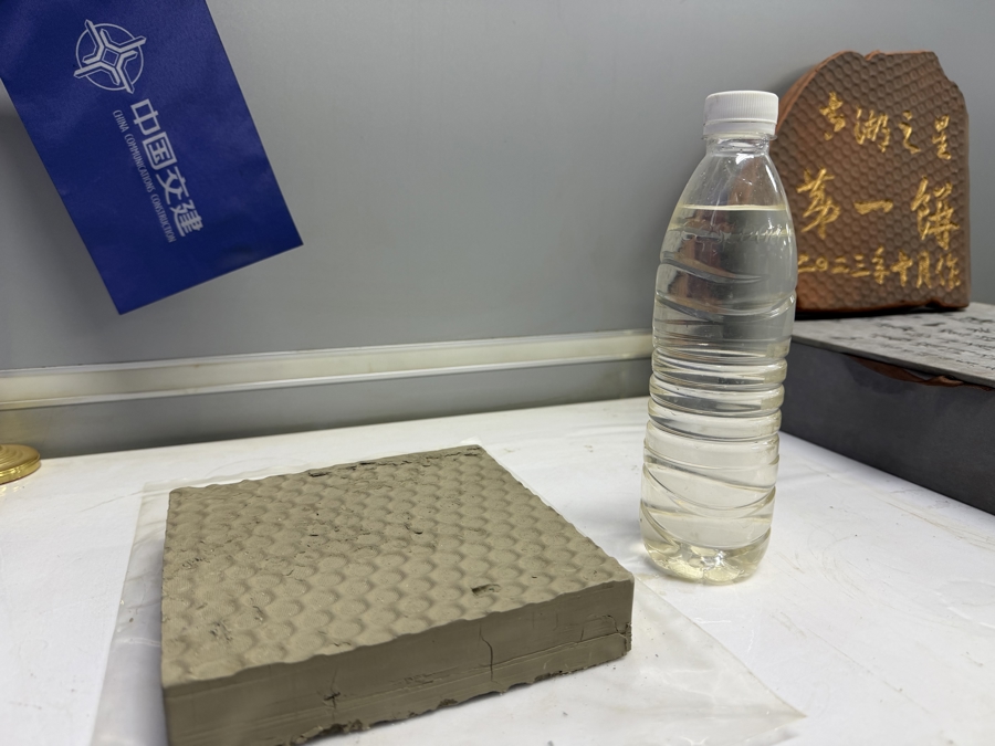 太湖淤泥制成的泥饼和处理过后的尾水,黄于悦摄