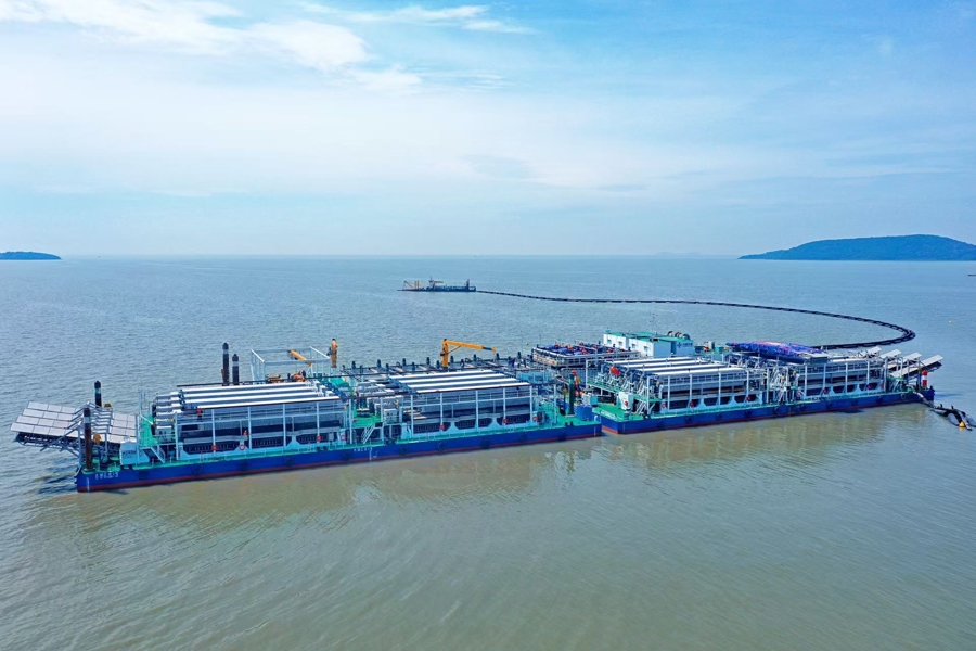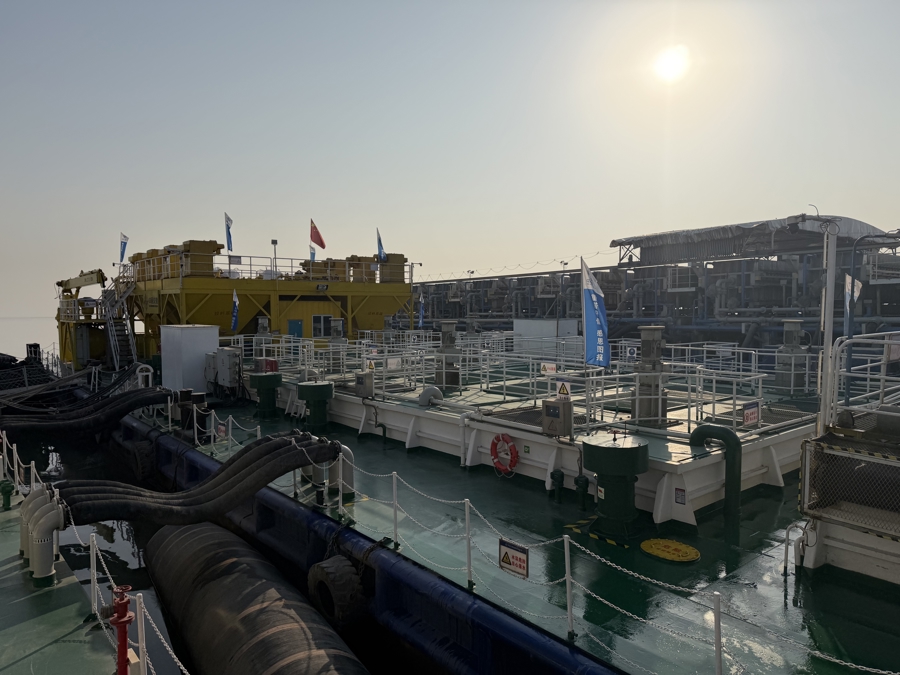“太湖之星”由3艘作业船串联而成,集生态清淤、淤泥固化和尾水处理等功能于一体。“过去,湖泊清淤需要将底泥运到陆地进行脱水和无害化处理,不仅占地多、周期长、运输难,还容易造成流溢风险。而‘太湖之星’在水上就能完成这些工作。”李大伟介绍,自2024年3月15日投入使用以来,“太湖之星”已完成300万方的淤泥处理。