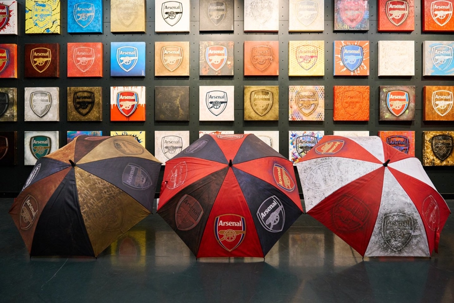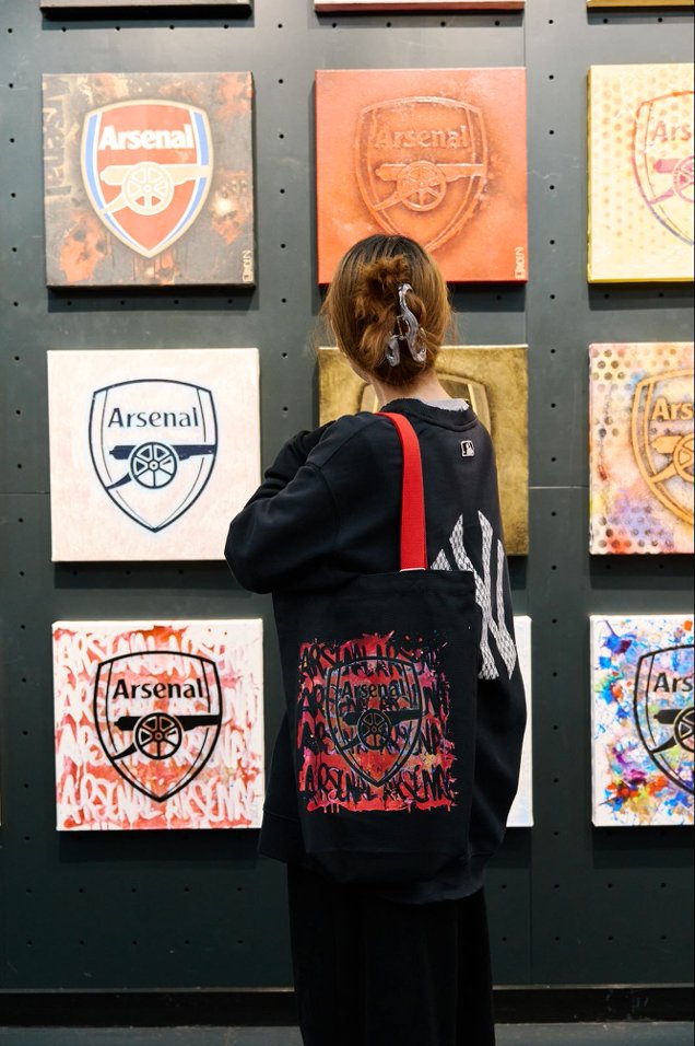 展览现场同步发售艺术周边,以及阿森纳俱乐部精选商品:托特包、主题雨伞,到精致还原的球星画作同款冰箱贴、展览海报、画框,还有同款球衣……每一件都让艺术转化为可触碰、可收藏、可融入日常的生活之物,让球迷得以沉浸式感受赛前氛围。