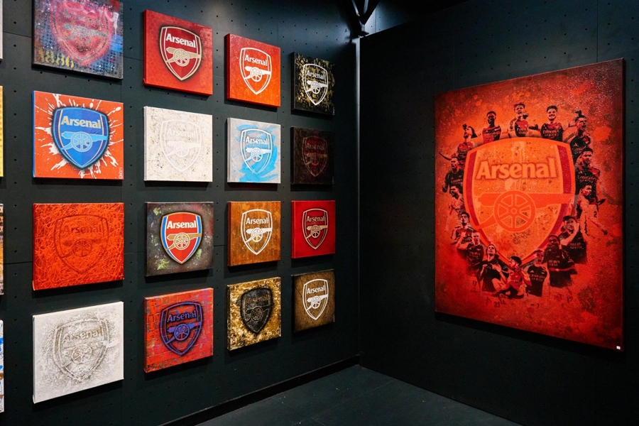 “你是阿森纳的支持者吗?”今天,当你跨入朵云书院·旗舰店,可能会面对艺术家海登·波恩的“灵魂拷问”。阴冷的冬天里,上海中心大厦52层的朵云书院·旗舰店正被球迷的热情点燃。阿森纳足球俱乐部成立139年来首次官方艺术展在此举行,这不仅是一场艺术展,更是体育精神、当代艺术、城市文旅与书店空间在云端之上跨界融合。阿森纳传奇队长托尼·亚当斯通过视频发来祝贺:“那些画面瞬间将我带回到了自己在阿森纳踢球时的骄傲与激情之中。”