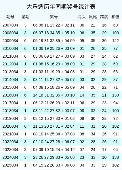 大乐透积年同时奖号数据统计图表