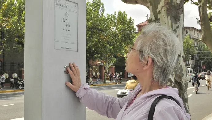 咫尺,上海在部分小区门口、病院、市场、公交站旁装置了叫车机灵屏、扬招杆,按一下就行。