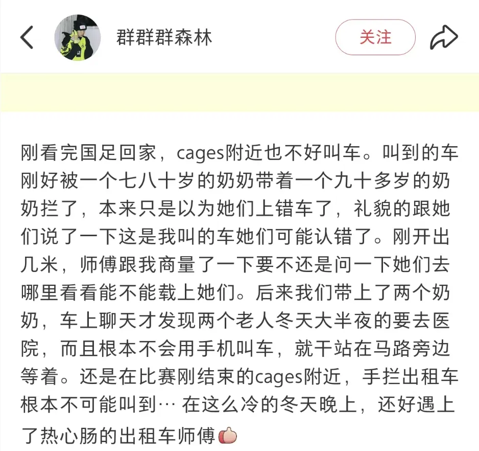王念念忠师父示意:“我其时莫得想太多,这样冷的天又是夜深,两位老东说念主在路边扬招叫车太难了。是以就跟乘客询查一下能弗成载她们一程。乘客也蛮好的,容许了。”