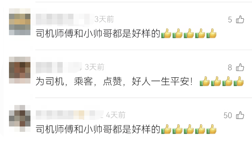 繁多网友为司机和乘客点赞