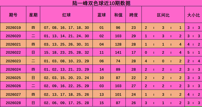 陆一峰双色球本期保举: